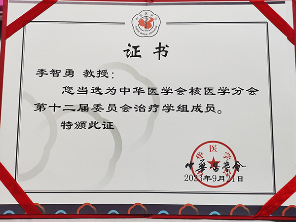 徐醫(yī)附院李智勇主任醫(yī)師當(dāng)選中華醫(yī)學(xué)會(huì)核醫(yī)學(xué)分會(huì)第十二屆委員會(huì)治療學(xué)組成員