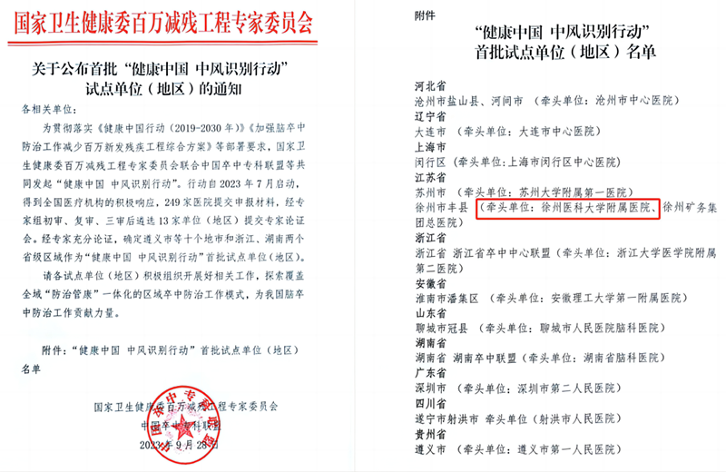 徐醫(yī)附院入選“健康中國 中風識別行動”全國首批試點單位