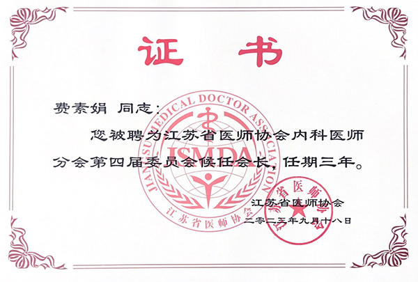 徐醫(yī)附院費(fèi)素娟教授當(dāng)選江蘇省醫(yī)師協(xié)會(huì)內(nèi)科醫(yī)師分會(huì)第四屆委員會(huì)候任會(huì)長(zhǎng)