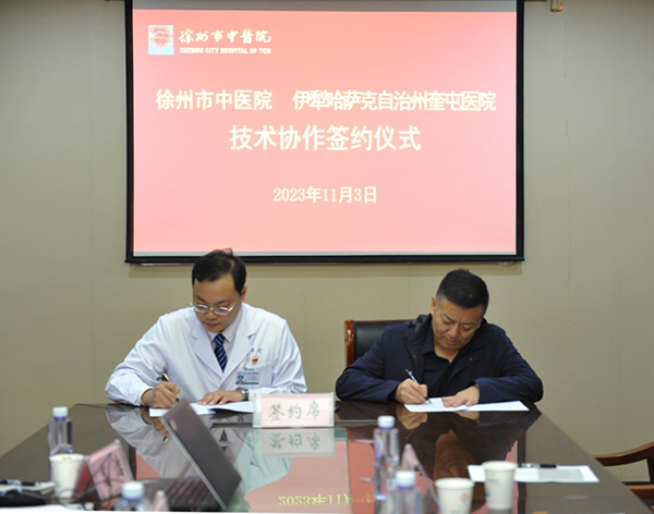 隨后,徐州市中醫(yī)院季培琛副院長和伊犁州奎屯醫(yī)院莫志強副院長,分別代表兩家醫(yī)院簽訂了技術協(xié)作協(xié)議。