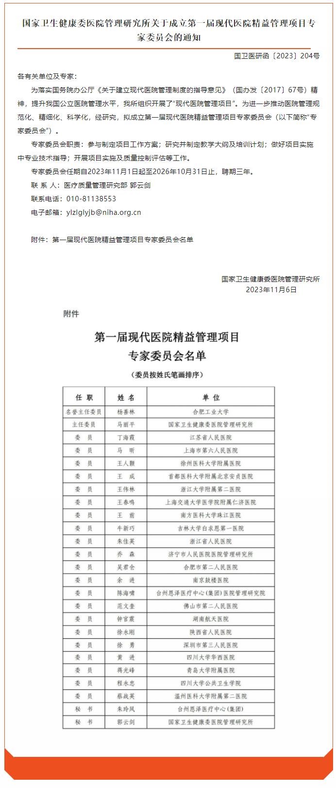 徐醫(yī)附院黨委書記王人顥教授當(dāng)選國家衛(wèi)健委醫(yī)院管理研究所第一屆現(xiàn)代醫(yī)院精益管理項目專家委員會委員