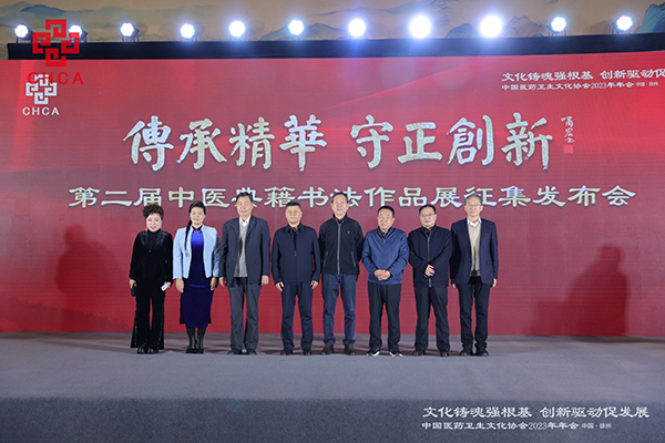 會(huì)上,由中醫(yī)藥管理局指導(dǎo),中國(guó)醫(yī)藥衛(wèi)生文化協(xié)會(huì)、國(guó)家中醫(yī)藥博物館等單位共同發(fā)起的“傳承精華 守正創(chuàng)新”第二屆中醫(yī)典籍書(shū)法作品征集活動(dòng)正式啟動(dòng)。中國(guó)醫(yī)藥衛(wèi)生文化協(xié)會(huì)首屆會(huì)長(zhǎng)陳嘯宏,中國(guó)中醫(yī)藥博物館副館長(zhǎng)楊德昌,徐州市衛(wèi)健委黨委書(shū)記、主任黃廣振,徐州市中醫(yī)院黨委書(shū)記范從海,徐州醫(yī)科大學(xué)附屬醫(yī)院院長(zhǎng)金培生,《中國(guó)醫(yī)師報(bào)》執(zhí)行社長(zhǎng)兼執(zhí)行總編輯張艷萍,中國(guó)醫(yī)藥衛(wèi)生文化協(xié)會(huì)會(huì)長(zhǎng)鄭宏共同啟動(dòng)征集活動(dòng)。