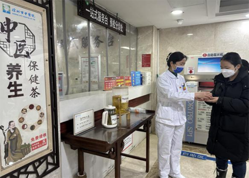 黃淮網(wǎng) 徐州市中醫(yī)院自開展“真心、貼心、熱心”的“三心”服務(wù)以來,始終以改善人民群眾看病就醫(yī)感受為目標(biāo),圍繞提升患者就醫(yī)體驗(yàn),提升百姓滿意度,簡化患者就醫(yī)流程,創(chuàng)新中醫(yī)特色服務(wù)舉措。徐州市中醫(yī)院根據(jù)立冬節(jié)氣的氣候特點(diǎn),在門診推出適宜冬季養(yǎng)生的中藥茶飲,開展冬日茶飲暖人心專項(xiàng)活動,讓就診的門診患者走進(jìn)中醫(yī)院就能喝上一杯暖暖的中藥養(yǎng)生茶。