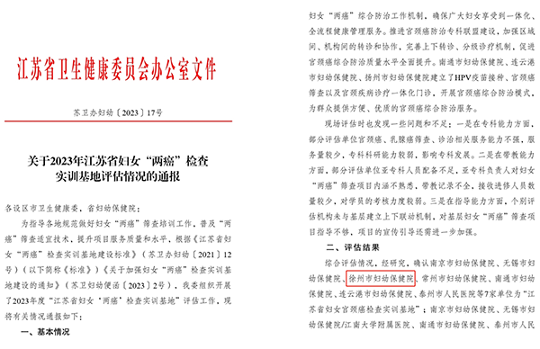 11月17日江蘇省衛(wèi)健委發(fā)布《關(guān)于2023年江蘇省婦女“兩癌”檢查實(shí)訓(xùn)基地評(píng)估情況的通報(bào)》,徐州市婦幼保健院成為首批“江蘇省婦女宮頸癌檢查實(shí)訓(xùn)基地”也是全市唯一獲批的醫(yī)療機(jī)構(gòu)!
