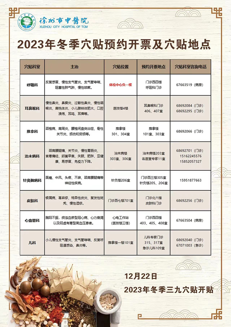 徐州市中醫(yī)院2023年冬季“三九”穴貼全面接受預(yù)約掛號、開單