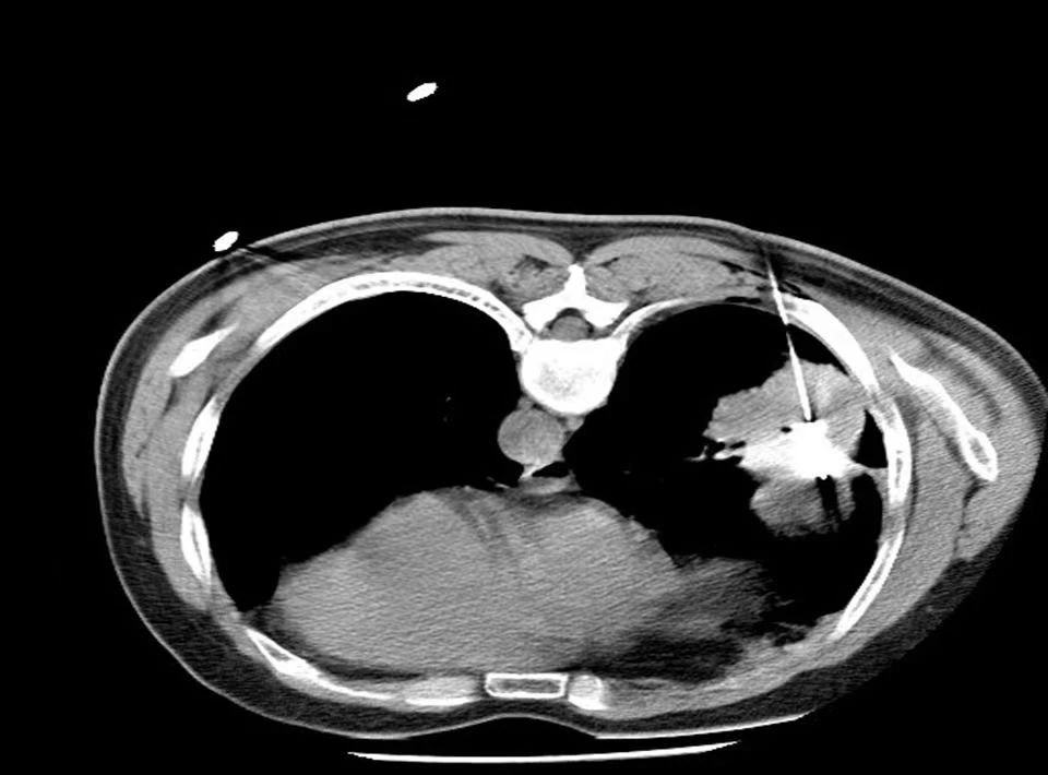 張大爺術后無明確不適,返回病房。術后第二日復查胸片,基本正常,無血氣胸表現(xiàn)。張大爺術后5天,安全出院。