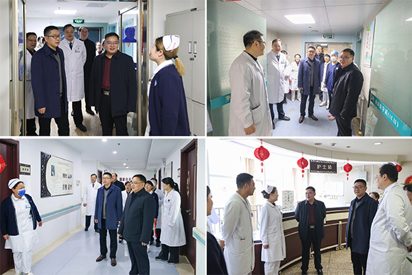 “給大家拜年啦,祝你們春節(jié)快樂(lè)!”每到一處,院領(lǐng)導(dǎo)們都親切地與各科室在崗人員進(jìn)行交流,向他們致以新春佳節(jié)的美好祝愿,并詳細(xì)了解了春節(jié)期間病人住院及就診情況、醫(yī)療護(hù)理情況,叮囑醫(yī)務(wù)人員在春節(jié)期間要時(shí)刻牢記安全生產(chǎn)的重要性,盡職盡責(zé),關(guān)心、愛(ài)護(hù)病人,確保大家度過(guò)一個(gè)平安祥和的春節(jié)。同時(shí)院領(lǐng)導(dǎo)們還為住院患者送上新春祝福,希望他們?cè)缛湛祻?fù)。