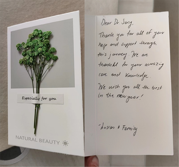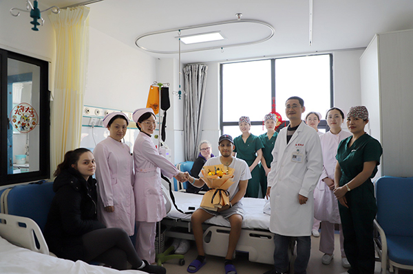 中國(guó)的傳統(tǒng)新年悄然而至,Lusion的媽媽也專程來到中國(guó),給血液科帶來他們誠(chéng)摯的感謝。王祥民博士代表病區(qū)送上了火紅的中國(guó)結(jié),祝愿Lusion一切安好。Lusion媽媽感受到了中國(guó)新年的熱鬧,祥和和溫暖,她說:感謝你們團(tuán)隊(duì)精湛的醫(yī)療技術(shù),感謝你們團(tuán)隊(duì)挽救了我兒子的生命,祝愿中國(guó)醫(yī)生新年快樂!2024年2月15日,Lusion全家啟程回國(guó)。近期隨訪,Lusion仍然處于良好的身心健康狀態(tài)。