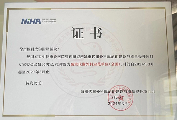 徐醫(yī)附院上榜全國(guó)減重代謝外科示范單位