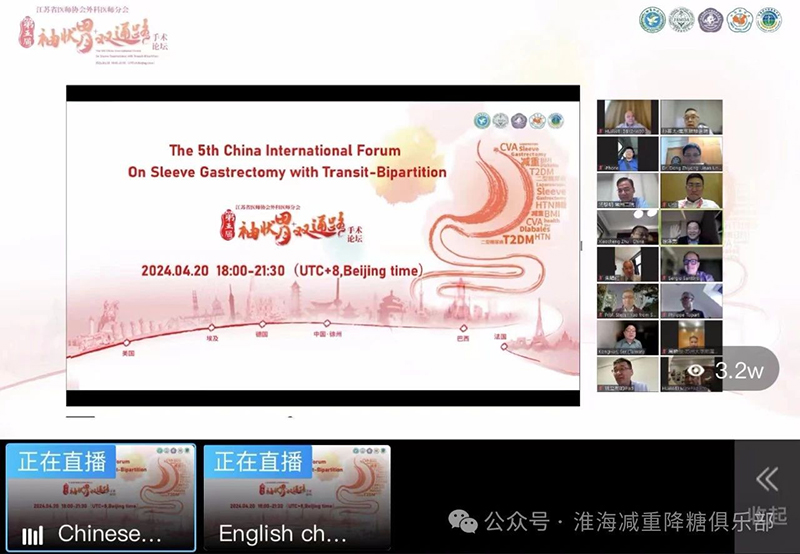 黃淮網(wǎng)(徐菱晨)2024年4月20日,第五屆“中國(guó)國(guó)際袖狀胃+雙通路網(wǎng)絡(luò)論壇”專題學(xué)術(shù)會(huì)議在徐州醫(yī)科大學(xué)附屬醫(yī)院順利召開(kāi)。來(lái)自全球中國(guó)、巴西、埃及、法國(guó)、美國(guó)、德國(guó)、南非、日本及利比里亞共和國(guó)等9個(gè)國(guó)家,共計(jì)60余位國(guó)際、國(guó)內(nèi)減重專家相聚云端,圍繞“袖狀胃+雙通路”相關(guān)熱點(diǎn)話題進(jìn)行了經(jīng)驗(yàn)分享與學(xué)術(shù)討論,帶來(lái)了一場(chǎng)減重診療前沿進(jìn)展的學(xué)術(shù)盛宴,會(huì)議累計(jì)點(diǎn)擊量3.2萬(wàn)人次。本次活動(dòng)由江蘇省醫(yī)師協(xié)會(huì)外科醫(yī)師分會(huì)主辦,徐醫(yī)附院減重代謝外科中心承辦。開(kāi)幕式由徐州醫(yī)科大學(xué)國(guó)際肥胖與代謝性疾病醫(yī)學(xué)中心主任朱孝成教授主持。