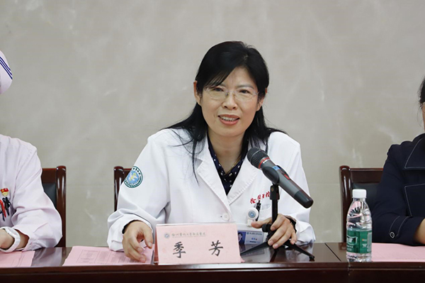 季芳書(shū)記對(duì)鹽城市護(hù)理學(xué)會(huì)譚思源理事長(zhǎng)一行的到來(lái)表示歡迎,對(duì)長(zhǎng)期以來(lái)關(guān)心和支持徐醫(yī)附院護(hù)理工作的夏靜理事長(zhǎng)表示感謝,并介紹了徐醫(yī)附院的發(fā)展歷程和護(hù)理重點(diǎn)專(zhuān)科建設(shè)、專(zhuān)科護(hù)士基地建設(shè)等方面取得的成績(jī)。她表示,鹽城市護(hù)理學(xué)會(huì)的工作成績(jī)突出,希望雙方加強(qiáng)交流,推進(jìn)醫(yī)院護(hù)理高質(zhì)量發(fā)展。