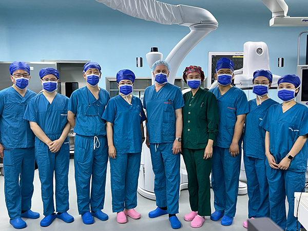 三位加方專家在院期間,王志萍陪同參觀、介紹了徐醫(yī)附院麻醉科、手術室。加方專家對徐醫(yī)附院的整體實力,尤其是器官移植手術間和“達芬奇”機器人等給予了高度贊賞。Cecere教授一行參與了多個心臟搭橋和心臟瓣膜手術病例術前討論,進入手術室指導與交流。Cecere教授指導心臟大血管外科韋俊主任團隊,完成兩例體外循環(huán)下心臟搭橋手術和兩例心臟瓣膜手術,并圍繞手術方法、操作細節(jié)、手術理念等關鍵問題與手術團隊進行了深入的探討。