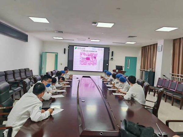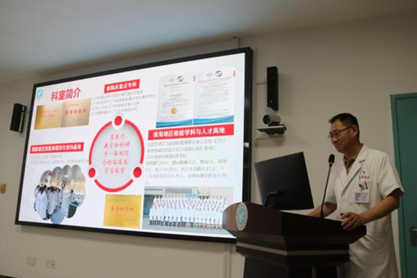 徐醫(yī)附院醫(yī)學(xué)檢驗科副主任徐銀海向評審組詳細(xì)匯報了科室自初次現(xiàn)場評審至今在質(zhì)量管理體系建設(shè)、質(zhì)量指標(biāo)監(jiān)測、人員管理、儀器設(shè)備管理等方面運行的具體情況。