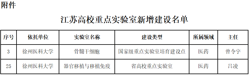 黃淮網(wǎng)(張沈陽)6月28日,根據(jù)《省教育廳關于公布江蘇高校重點實驗室新增建設名單的通知》精神,徐州醫(yī)科大學附屬醫(yī)院兩個重點實驗室獲批立項建設,其中:骨髓干細胞實驗室獲批國家級重點實驗室培育建設點、器官移植與移植免疫實驗室獲批省高校重點實驗室,是本輪同時獲批國家級與省級重點實驗室立項的唯一醫(yī)藥領域單位。