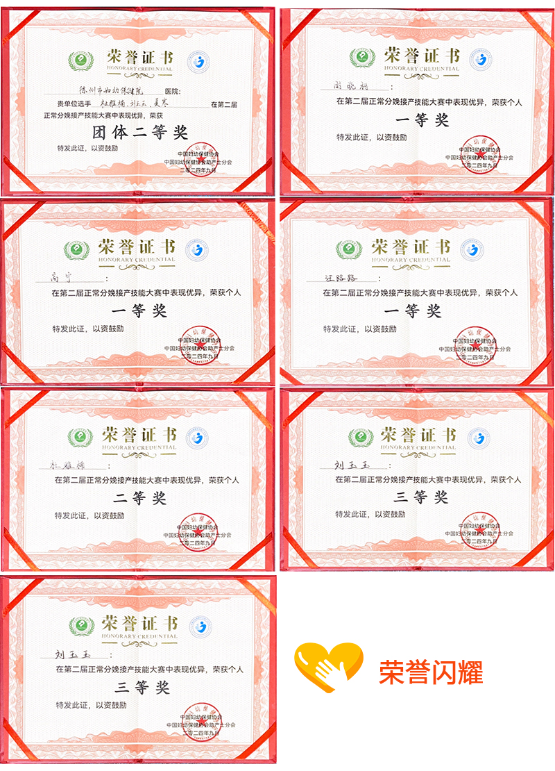 徐州市婦幼保健院兩組隊(duì)伍在市級(jí)賽道分別榮獲全國(guó)團(tuán)體一等獎(jiǎng)和二等獎(jiǎng)的佳績(jī)!另外,時(shí)曉柯、高寧、汪路路、夏寒4人分別榮獲全國(guó)個(gè)人一等獎(jiǎng),杜雅楠榮獲全國(guó)個(gè)人二等獎(jiǎng),劉玉玉榮獲全國(guó)個(gè)人三等獎(jiǎng)的好成績(jī)!