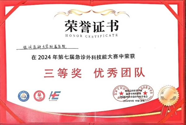 在創(chuàng)傷急救技能大賽環(huán)節(jié),張磊副主任醫(yī)師、崔建副主任醫(yī)師、姚君偉主治醫(yī)師、高興副主任護(hù)師和趙明階主管護(hù)師組成醫(yī)護(hù)團(tuán)隊(duì),憑借精湛的技術(shù)和默契的配合,贏得了在場(chǎng)專家和觀眾的一致好評(píng),經(jīng)過激烈角逐,最終榮獲三等獎(jiǎng)和優(yōu)秀團(tuán)隊(duì)殊榮。