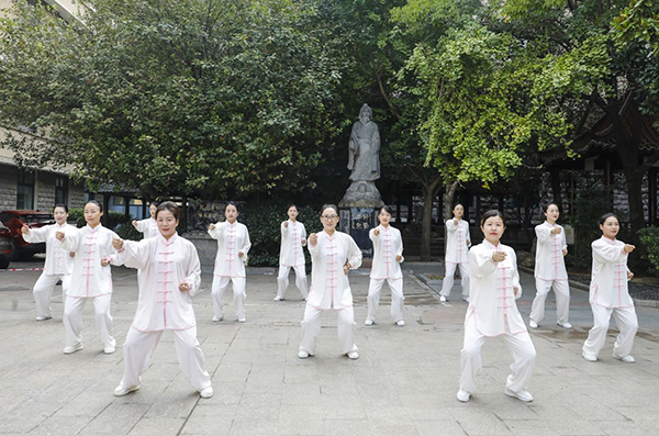 晨間,護(hù)理人員與患者朋友一同練習(xí)八段錦。“八段錦預(yù)備式,左腳開步,與肩同寬,屈膝下蹲……”護(hù)士長為大家講解基本動(dòng)作。伴隨著舒緩的音樂八段錦逐漸演練完,大家的心情得到放松、肢體得以舒展。