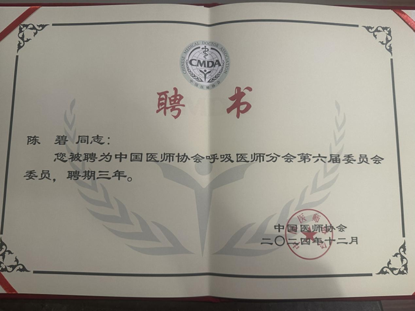 徐醫(yī)附院呼吸與危重癥醫(yī)學(xué)科陳碧教授當(dāng)選中國(guó)醫(yī)師協(xié)會(huì)呼吸醫(yī)師分會(huì)委員