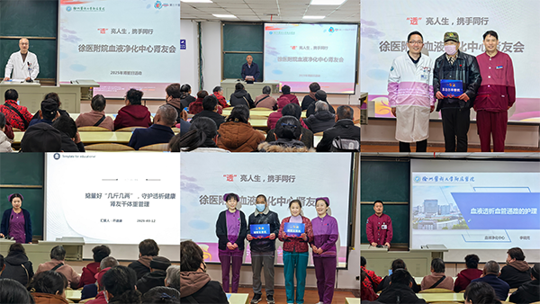 血液凈化中心以“透亮人生,攜手同行”為主題舉辦血液透析腎友會。近百名腎友及其家屬齊聚教學(xué)綜合樓301,血液凈化中心護(hù)士長史靈芝、主管護(hù)師王政靈雪主持。孫東教授強調(diào)了醫(yī)患合作的重要性,鼓勵腎友們以積極樂觀的心態(tài)面對疾病。王迪生主任深入淺出地講解了“血管通路的建立與維護(hù)”,許迪迪主管護(hù)師圍繞“掂好幾斤幾兩,守護(hù)透析健康”傳授了透析患者科學(xué)的飲水量管理方法,李曉亮主管護(hù)師分享了“動靜脈瘺自我護(hù)理”知識,化俊飛護(hù)士長進(jìn)行有獎問答環(huán)節(jié)并為獲獎腎友頒發(fā)實用的健康禮品,不僅有效普及腎臟健康知識,還切實提升患者自我管理能力,為守護(hù)患者健康添磚加瓦,成為健康科普歷程中的生動實踐。腎友及家屬們積極參與,現(xiàn)場氛圍熱烈,通過醫(yī)護(hù)講座、透析經(jīng)驗交流、病友心得分享,構(gòu)建起了和諧互信的醫(yī)患關(guān)系。