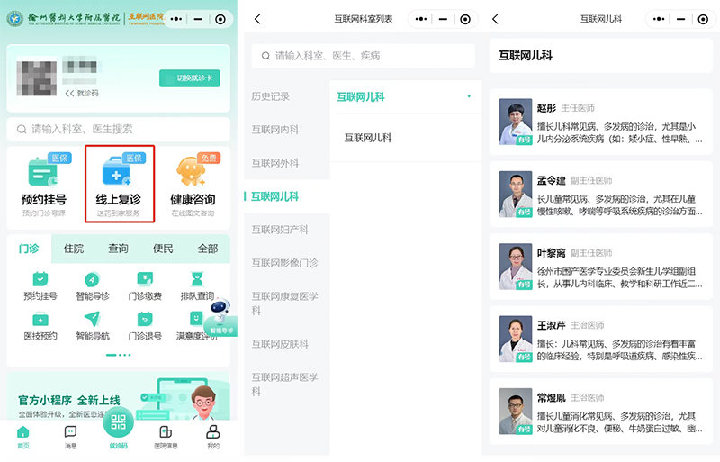 點(diǎn)擊【線上復(fù)診】,選擇對(duì)應(yīng)的科室及醫(yī)生