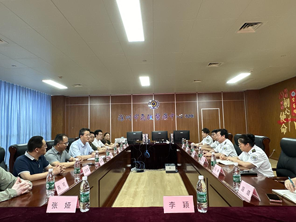 黃淮網(wǎng) 為加強(qiáng)院前急救與院內(nèi)救治的無縫銜接,提升區(qū)域急危重癥救治能力,推動(dòng)國(guó)家級(jí)樣板黨支部建設(shè),8月8日下午,徐州醫(yī)科大學(xué)附屬醫(yī)院副院長(zhǎng)燕憲亮教授帶領(lǐng)急診醫(yī)學(xué)科團(tuán)隊(duì)前往徐州市急救醫(yī)療中心(120)參觀交流。徐州市急救醫(yī)療中心主任劉加彬及相關(guān)人員熱情接待并全程陪同。