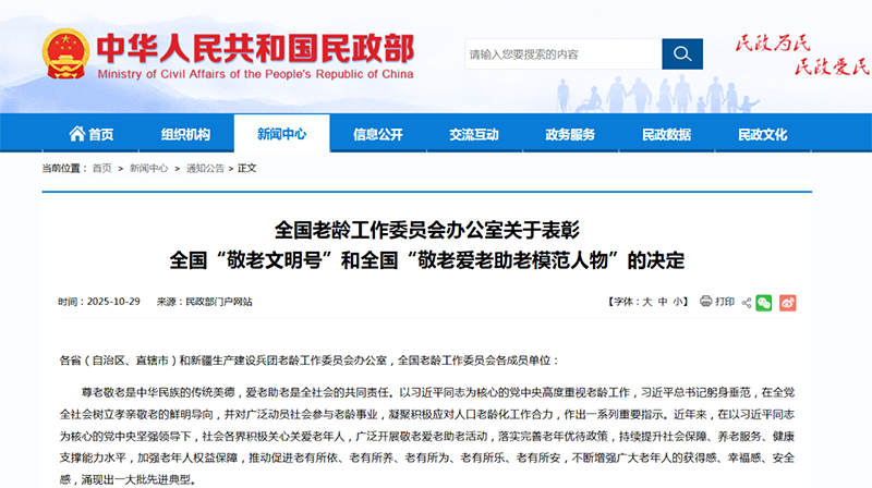 《決定》指出,希望受表彰的集體和個人珍惜榮譽、再接再厲,持續(xù)發(fā)揮模范帶頭作用,積極引領(lǐng)全社會傳承弘揚中華民族敬老愛老助老的傳統(tǒng)美德,大力營造關(guān)心關(guān)愛老年人的文明風(fēng)尚,共同建設(shè)老年友好型社會,為不斷提升老年人生活質(zhì)量、增進(jìn)老年人福祉、推動新時代老齡事業(yè)高質(zhì)量發(fā)展貢獻(xiàn)更大力量。