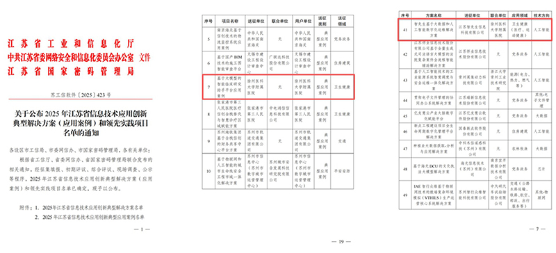 黃淮網(wǎng) 12月29日,江蘇省工業(yè)和信息化廳、中共江蘇省委網(wǎng)信辦、江蘇省國(guó)家密碼管理局聯(lián)合印發(fā)《關(guān)于公布2025年江蘇省信息技術(shù)應(yīng)用創(chuàng)新典型解決方案(應(yīng)用案例)和領(lǐng)先實(shí)踐項(xiàng)目名單的通知》。經(jīng)嚴(yán)格評(píng)審,徐州醫(yī)科大學(xué)附屬醫(yī)院申報(bào)的《基于大模型的智能臨床研究助手平臺(tái)應(yīng)用》成功入選“2025年江蘇省信息技術(shù)應(yīng)用創(chuàng)新領(lǐng)先實(shí)踐項(xiàng)目”,成為全省衛(wèi)生健康領(lǐng)域在臨床科研智能化方向的重要標(biāo)桿。同時(shí),徐醫(yī)附院與江蘇智先生信息科技有限公司聯(lián)合申報(bào)的《智先生基于大數(shù)據(jù)和人工智能數(shù)字化運(yùn)維解決方案》也成功入選“2025年江蘇省信息技術(shù)應(yīng)用創(chuàng)新典型解決方案”。