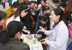 藥劑科王慧副主任向市民介紹膏方并請(qǐng)市民免費(fèi)品嘗。