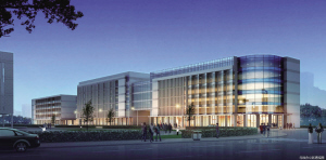北區(qū)股份制醫(yī)院基地位于徐州市鼓樓生態(tài)園中山北路延長段,總用地面積 122畝,東側(cè)為中山北路, 南側(cè)為城市規(guī)劃道路。徐州市第三人民醫(yī)院新院區(qū)將按照國際JCI 醫(yī)院評審標(biāo)準(zhǔn),建成國際化、現(xiàn)代化、園林化的三級綜合性醫(yī)院和婦幼醫(yī)院,?圃\療特色突出,整體服務(wù)水平一流的三級腦科醫(yī)院、心血管病醫(yī)院,全力打造徐州及淮海經(jīng)濟(jì)區(qū)“管理一流、技術(shù)一流、服務(wù)一流、環(huán)境一流”的優(yōu)質(zhì)醫(yī)療平臺。徐州市第三人民醫(yī)院新院區(qū)建筑功能包括門急診、醫(yī)技、住院、保健,以及辦公、教學(xué)、科研、生活等,設(shè)置腦科醫(yī)院、婦幼醫(yī)院、心血管病醫(yī)院3個?漆t(yī)院,設(shè)置急救中心、微創(chuàng)中心、體檢中心、美容中心、透析中心等5個診療中心,設(shè)置集團(tuán)內(nèi)的消毒供應(yīng)中心、臨檢中心、 病理檢驗中心等3個外服中心?偞参粩(shù)1500床,總建筑面積約239120平方米,其中,地上160801平方米, 地下58319平方米,于2017年底投入使用。