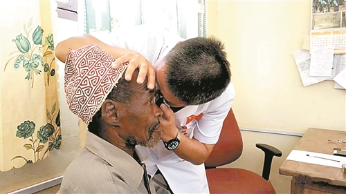 去奔巴島進行眼科義診手術,門診300多人次、白內(nèi)障手術35例,張震是當?shù)匮奂不颊叩?ldquo;光明使者”。