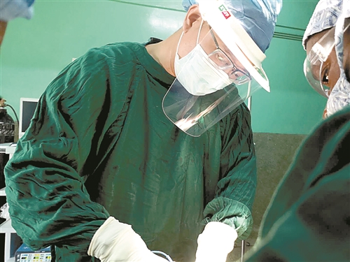 張俊杰:做好防護措施,為艾滋病患者實施手術。