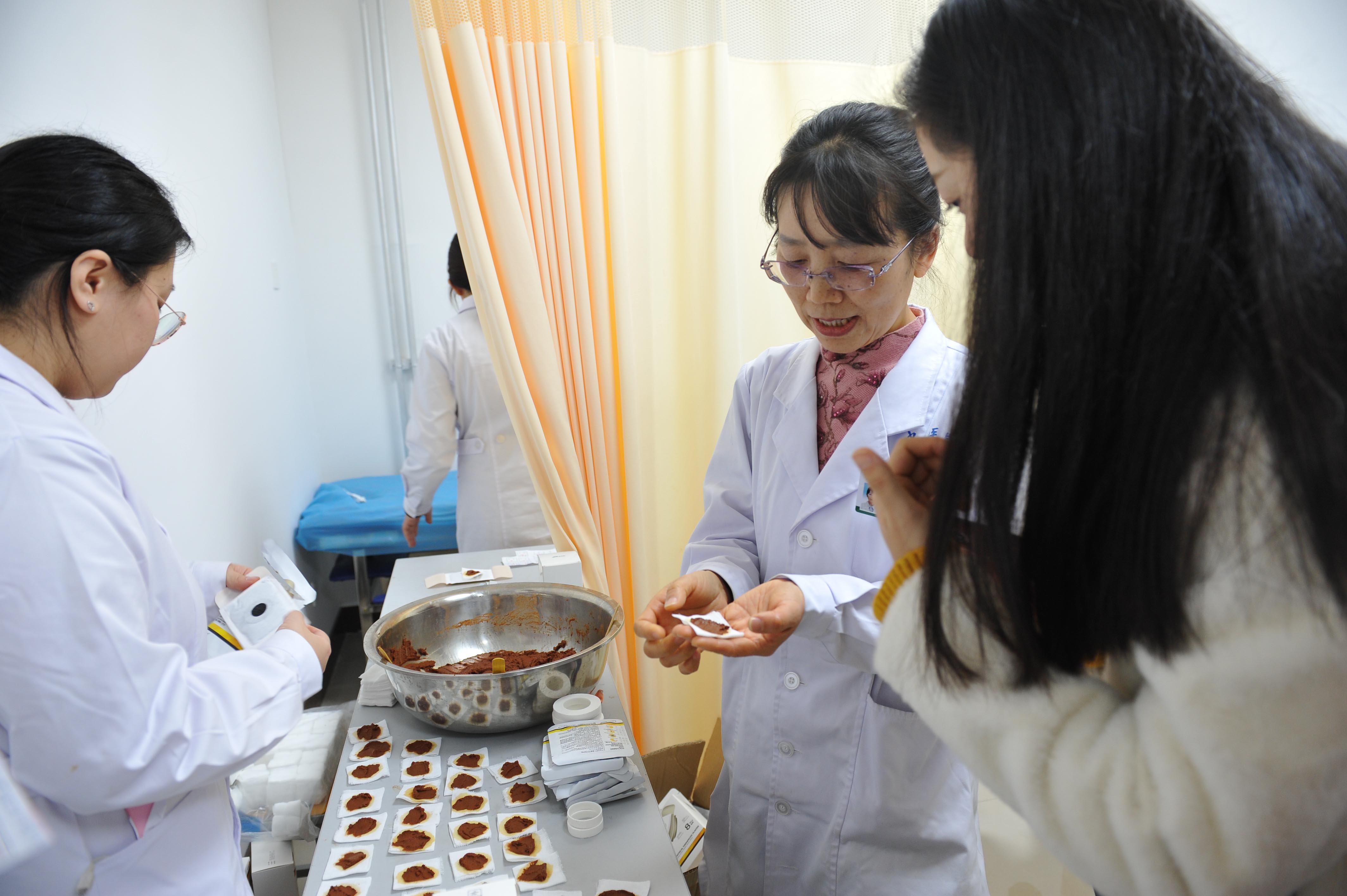 一位60多歲的阿姨,面色紅潤(rùn)、精神飽滿,一臉的滿意,她說:“我連續(xù)貼三年了,是中醫(yī)穴貼的老粉絲了。我患有慢性支氣管炎好幾年了,到了冬天咳嗽得更加厲害,但是今年明顯感覺癥徐州市中醫(yī)院治未病科主任潘小紅介紹到,中醫(yī)理論講究治未病,就是針對(duì)冬季好發(fā)疾病,在三九寒冬天選擇穴位貼敷,能起到溫陽(yáng)益氣、祛風(fēng)散寒、提高人體抵抗力,及預(yù)防疾病發(fā)作的作用。根據(jù)疾病的不同,徐州市中醫(yī)院每個(gè)科室三九穴貼配方也不同。其中治未病科的穴貼膏藥中含有十幾種名貴的中藥材,主要有肉桂、丁香、當(dāng)歸、川芎、乳香、沒藥、吳茱萸、白芥子等等,將它們打成細(xì)粉,用鮮姜汁調(diào)合成膏,起到祛寒、除濕,活血,止痛的效果。狀減輕,咳嗽、咳痰次數(shù)都減少了。”