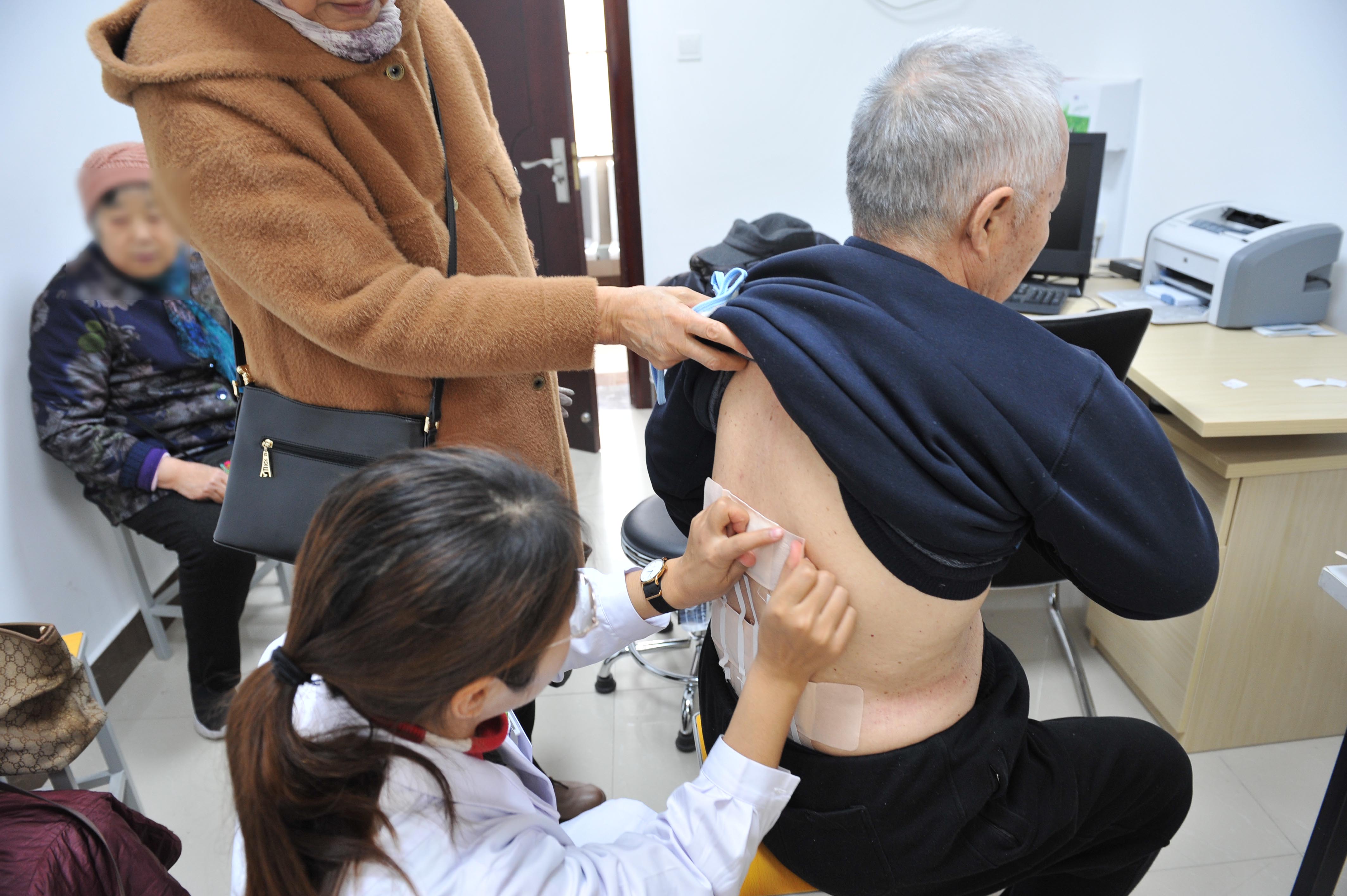 在現(xiàn)場(chǎng),已經(jīng)貼完第一貼的張大爺,笑意盈盈,認(rèn)真聽著醫(yī)生給他講解穴貼注意事項(xiàng)。他說道:“去年開始有腰腿疼痛的毛病,冬天尤其嚴(yán)重。今年夏天我貼了“三伏貼”,效果不錯(cuò),疼痛減輕了,所以今年冬天又來貼三九貼治療”。