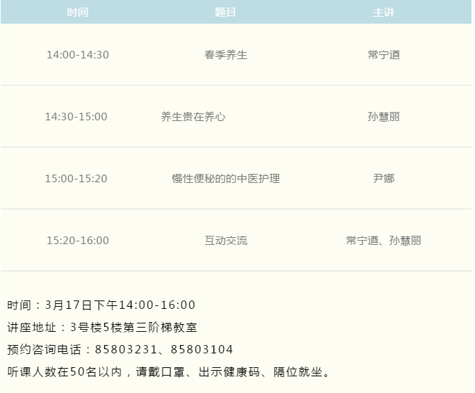 平安、健康、幸福、長壽,是每一個人的愿望。因此,大家都很重視養(yǎng)生。養(yǎng)生分為養(yǎng)身和養(yǎng)心。養(yǎng)身是最基本的養(yǎng)生,更重要的是養(yǎng)心。養(yǎng)心可以更好地養(yǎng)身,最終達到身心健康。孫慧麗主任將通過“養(yǎng)生貴在養(yǎng)心”的講座,帶領(lǐng)大家一起回歸內(nèi)心,感受養(yǎng)心的美好。