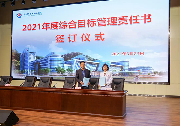 黃淮網(wǎng) 近日,徐州市第一人民醫(yī)院院長(zhǎng)、黨委副書記丁繼存與各臨床、醫(yī)技、機(jī)關(guān)科室負(fù)責(zé)人簽訂了《2021年度綜合目標(biāo)管理責(zé)任書》,拉開了醫(yī)院2021年全面實(shí)施綜合目標(biāo)責(zé)任制的序幕。