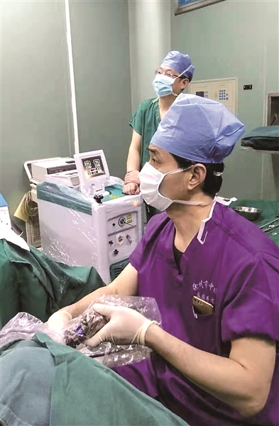 泌尿系統(tǒng)結(jié)石是泌尿外科的一種常見病、多發(fā)病,而徐州地區(qū)又是泌尿系統(tǒng)結(jié)石的高發(fā)區(qū),且許多是巨大、復(fù)雜結(jié)石。以往治療這種結(jié)石,多采用開放式手術(shù)治療,切口大、出血多,術(shù)后恢復(fù)慢,嚴(yán)重的還會(huì)造成腎功能損害。此外,還有部分患者因害怕手術(shù)而選擇保守的體外碎石術(shù),但多次進(jìn)行體外碎石可能會(huì)引起腎實(shí)質(zhì)不可逆的損傷,導(dǎo)致腎萎縮,甚至出現(xiàn)尿毒癥。