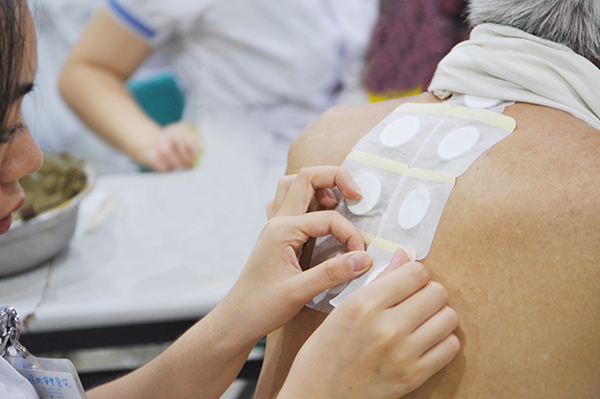 “穴位貼敷有2000多年的歷史,現(xiàn)在我們所謂中藥貼敷療法,就是在古人的基礎(chǔ)上對藥物進行了研究、加工以后,貼敷在人體的穴位上面,這樣通過刺激人體的穴位經(jīng)絡(luò),調(diào)整陰陽,提高機體的免疫力,以達到防病、治病的目的。”徐州市中醫(yī)院呼吸二科主任李英姿表示,根據(jù)“天人相應(yīng)”原理,特取每年初、中、末伏第一天進行治療。由于三伏天之時,陽光長,熱度高,自然界陽氣最旺盛,于是順時就勢攝取陽氣于人體,進行中藥穴位貼敷治療,以扶正固本,防治“冬病”,并取得了顯著療效。
