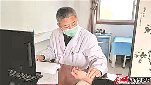 針灸腦病科卜淵主任中醫(yī)師在鼓樓區(qū)銅沛社區(qū)衛(wèi)生服務(wù)中心為患者把脈。