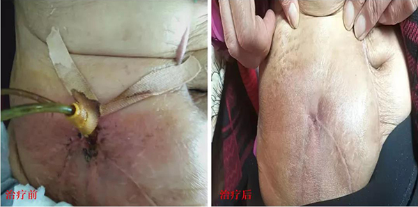 患者吳女士,反復出現(xiàn)右下腹疼痛三年余。因克羅恩病合并腹腔膿腫于當?shù)蒯t(yī)院及徐醫(yī)附院共4次手術(shù),但是術(shù)后不久均反復出現(xiàn)了腸瘺。之后輾轉(zhuǎn)國內(nèi)該領域頂級醫(yī)院再次行手術(shù)治療切除腸瘺處腸管,但術(shù)后仍出現(xiàn)腸瘺,于是只能放置雙套管引流,并行內(nèi)科藥物治療,治療效果欠佳。引流管周圍反復出現(xiàn)紅腫、疼痛、流膿,不能拔除,給吳女士生活帶來了極大的困擾。