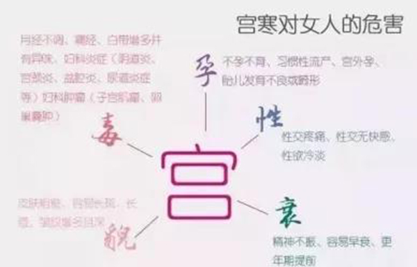 實性宮寒的病理機制是外感寒邪凝滯于胞宮,使氣血流通不暢,阻滯氣血,而宮寒虛證的病理機制是脾腎陽虛,虛寒內生,陽虛寒凝,胞失溫煦,發(fā)為痛經、月經后期、月經過少、閉經、不孕等病癥。因不同發(fā)病原因和不同的發(fā)病階段,宮寒可在女性的經、孕、乳、雜病等各方面有多種不同的臨床表現(xiàn),具體可以歸納為以下幾大類: