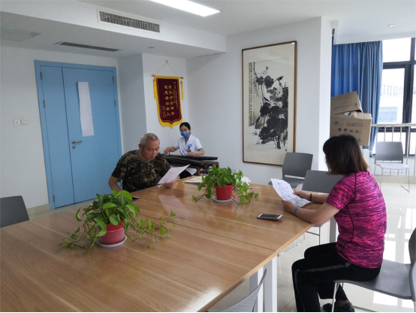 根據(jù)她現(xiàn)在的接受能力,教老兩口練習(xí)云手、腹式呼吸,平時也自己唱《仙翁操》。他們的左側(cè)肢體功能都得到進一步恢復(fù)。姚老先生表示,自己回家后也會堅持帶老伴練習(xí)。