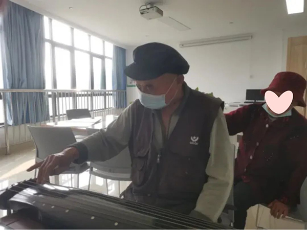 患者對古琴曲能接受后,帶她聽現(xiàn)場演奏,并在姚老先生的鼓勵下教她吟唱《仙翁操》,最開始只能唱“仙翁仙翁”,一小會兒就會唱“得道仙翁”了。有時候,她會說:俺是大老粗,啥也不懂。我說:古琴是用心感受的,享受古琴的好就行,不需要有知識、有學(xué)歷。再后來,教她基礎(chǔ)的勾指法,能安安靜靜地練習(xí)半小時。