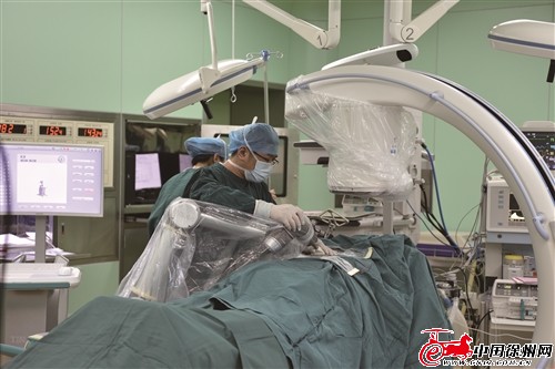 醫(yī)生在用天璣骨科機(jī)器人進(jìn)行手術(shù)。