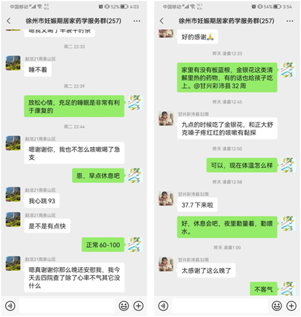 12月27日早晨5點(diǎn)多,“徐州市妊娠期居家藥學(xué)服務(wù)群”里就開始了用藥問詢,藥師們耐心地解答,及時(shí)的給出指導(dǎo)和建議。建群10多天以來,已解答各種用藥問題近千條。