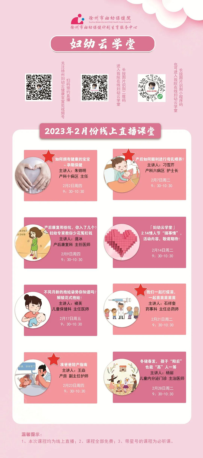 徐州婦幼·云學堂2月課表 -- 邀您一起加入云學堂直播間