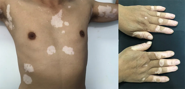白癜風(fēng)是皮膚科一種常見的皮膚、黏膜色素脫失性疾病,表現(xiàn)為局部皮膚或黏膜變白,若發(fā)生在毛發(fā)部位(如頭皮、眉毛),白斑處毛發(fā)也會變白。白癜風(fēng)各年齡段(中青年多見)及全身各部位均可發(fā)生,但以易受摩擦及陽光照曬的暴露部位以及皺褶部位好發(fā)。白癜風(fēng)起病隱匿,一般沒有自覺癥狀,少數(shù)患者在白斑擴(kuò)展蔓延時有輕度瘙癢感。本病一般在夏季進(jìn)展較快,冬季減慢或停止發(fā)展,常在暴曬、精神創(chuàng)傷、急性疾病或手術(shù)等應(yīng)激狀態(tài)下迅速擴(kuò)展。