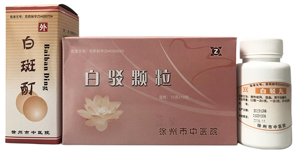 徐州市中醫(yī)院皮膚科根據(jù)白癜風(fēng)的病因病機(jī),研制了具有活血祛風(fēng)、調(diào)和氣血、滋肝補(bǔ)腎作用的醫(yī)院自制制劑白駁丸和白駁顆粒,以及外用藥物白斑酊,治療白癜風(fēng)效果非常好。另外,針對肢端部位(手足部位)的白癜風(fēng),我院皮膚科研制了中藥泡洗協(xié)定方,將中藥水煎后對手足部位進(jìn)行浸泡治療。