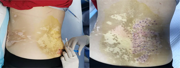 皮膚科還開展了自血療法治療白癜風(fēng)。通過抽取患者自身的靜脈血液注射到白斑處的皮內(nèi),可調(diào)節(jié)皮膚局部免疫,促進(jìn)黑素細(xì)胞功能恢復(fù)的作用。