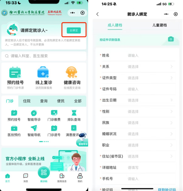 2. 進入首頁-點擊【添加就診人】-填寫實名信息(通過此方法也可添加家屬的就診信息)