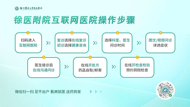 1. 進(jìn)入入口:關(guān)注 “徐州醫(yī)科大學(xué)附屬醫(yī)院” 官方微信公眾號(hào),點(diǎn)擊下方菜單欄的 “互聯(lián)網(wǎng)醫(yī)院”即可進(jìn)入。